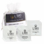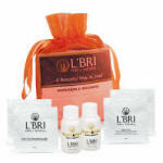 Hand & Body Care – Cucumber which includes 3 samples each of our Daily Moisturizing Hand & Body Lotion, Ultimate Body Wash, and Intense Body Butter. Literature includes our Product Guide, a L'BRI vs. The Competition Flyer and How to Use Product Instructions. Beautifully Packaged in a 5”w x 7”h Ivory Organza Bag.